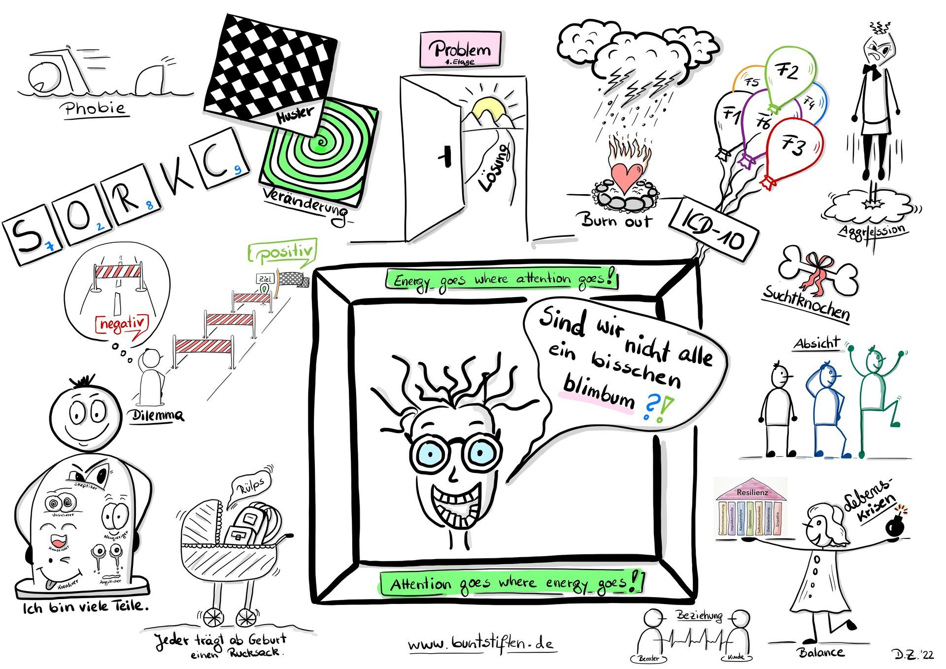 Egal, ob ich selbst Teilnehmerin bin, einen Vortrag halte, Wissen in Trainings vermittle oder lediglich die Einkaufsliste "schreibe" - ich zeichne es!